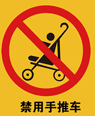自動扶梯出入口附近有“禁用手推車”的安全警示標(biāo)識。